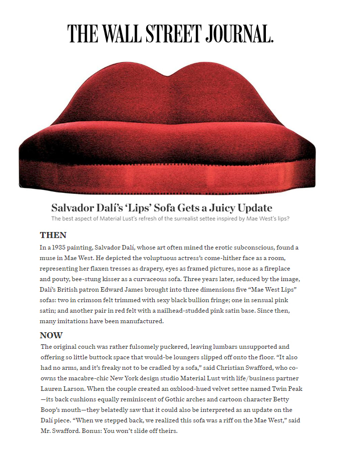 The best aspect of Material Lust’s refresh of the surrealist settee inspired by Mae West’s lips? You can actually sit in it.