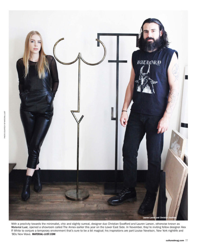With a proclivity towards the minimalist, chic, and slightly surreal, designer duo Christian Swafford and Lauren Larson, otherwise known as Material Lust, opened a showroom called The Annex earlier this year on the Lower East Side.
