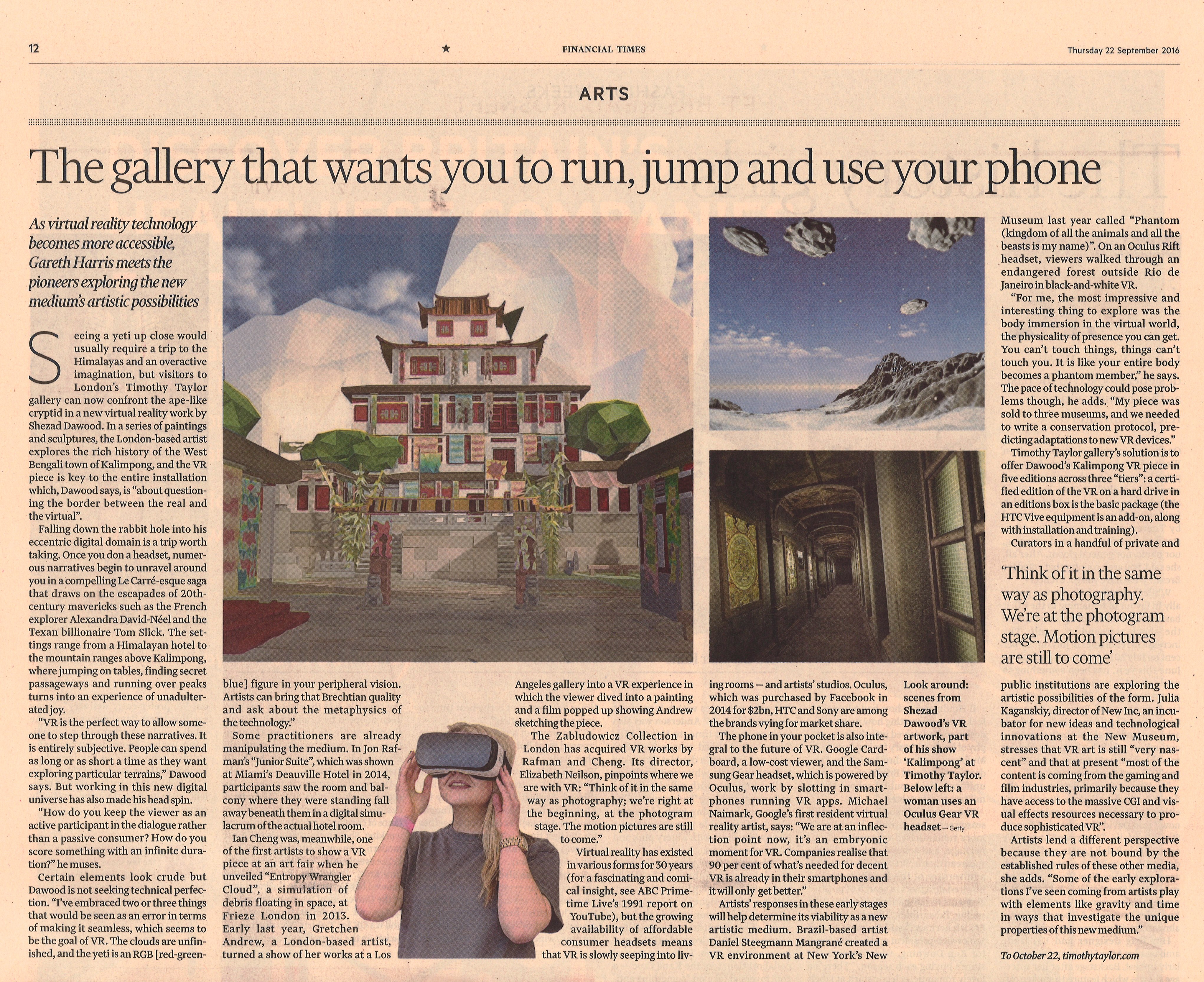 As virtual reality technology becomes more accessible, Gareth Harris meets the new pioneers exploring the new medium's artistic possibilities.